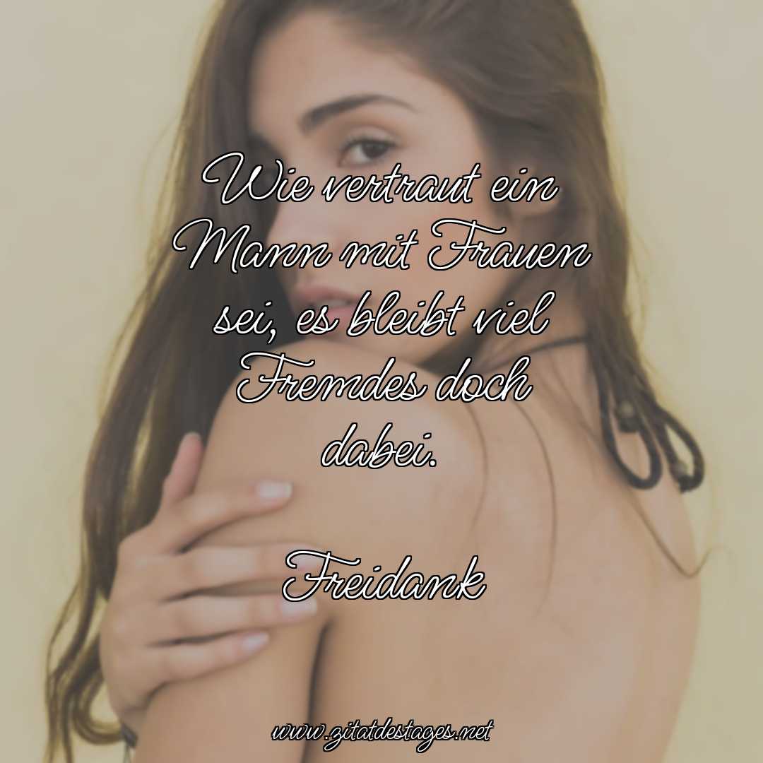 Das heutige Zitat des Tages lautet: „Wie vertraut ein Mann mit Frauen sei, es bleibt viel Fremdes doch dabei.“ (Freidank)