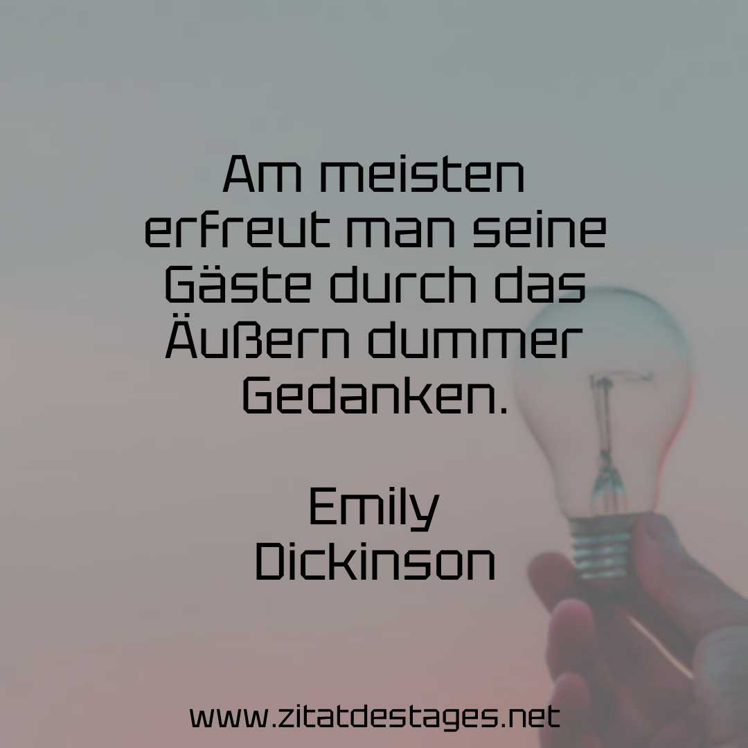 Das heutige Zitat des Tages lautet: „Am meisten erfreut man seine Gäste durch das Äußern dummer Gedanken.“ (Emily Dickinson)
