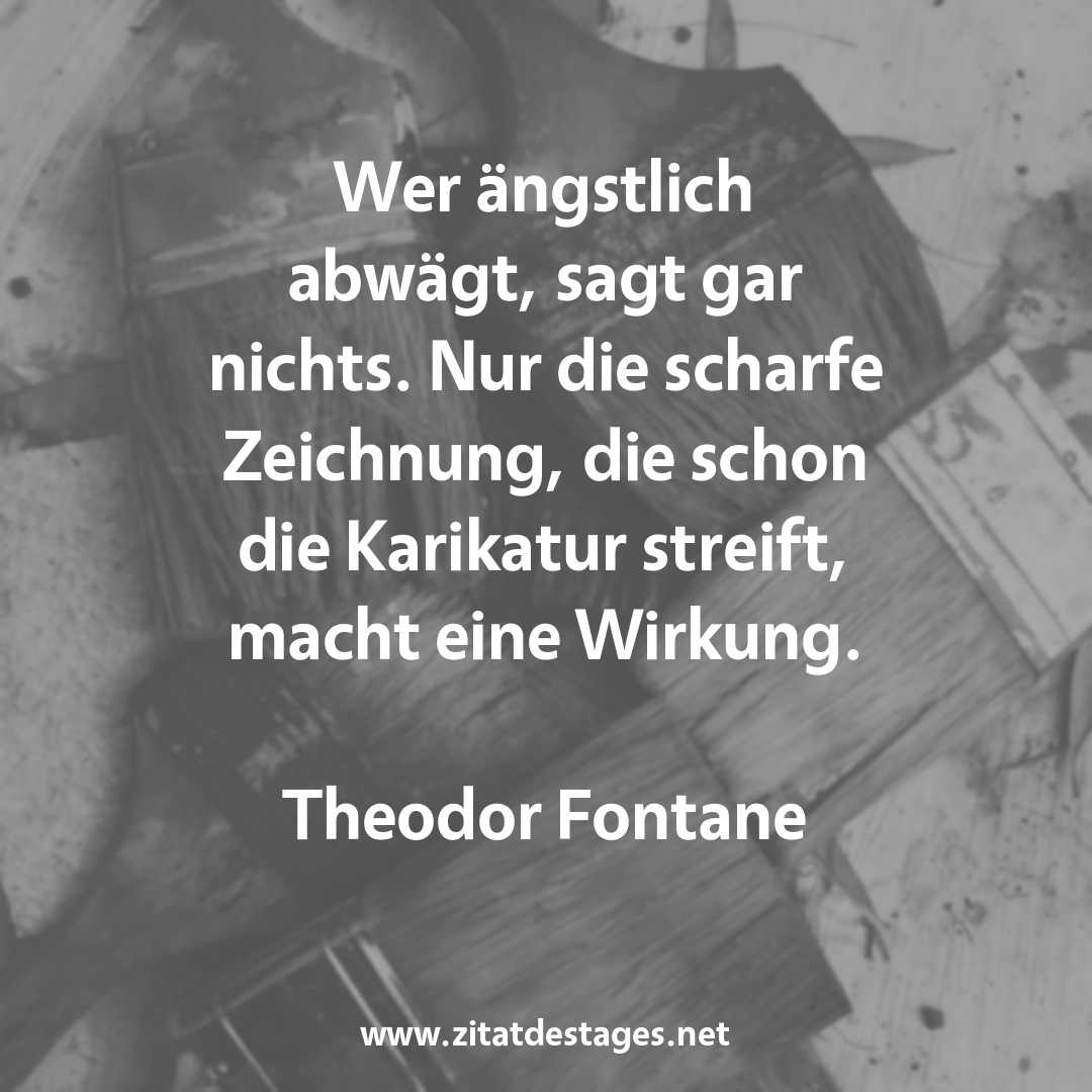 Unser heutiges Zitat des Tages ist: „Wer ängstlich abwägt, sagt gar nichts. Nur die scharfe Zeichnung, die schon die Karikatur streift, macht eine Wirkung.“ (Theodor Fontane)