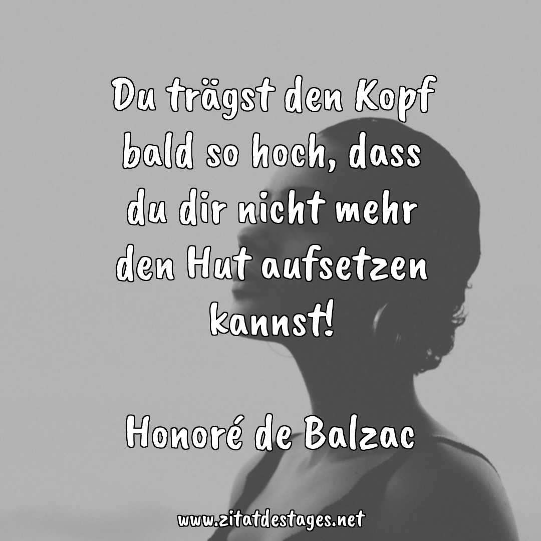 Unser heutiges Zitat des Tages ist: „Du trägst den Kopf bald so hoch, dass du dir nicht mehr den Hut aufsetzen kannst!“ (Honoré de Balzac)