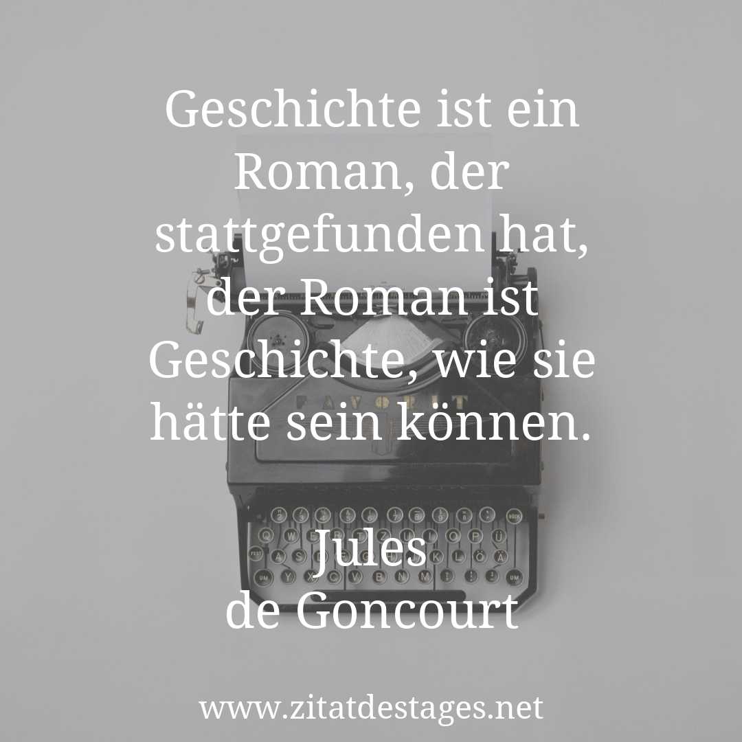 Das heutige Zitat des Tages lautet: „Geschichte ist ein Roman, der stattgefunden hat, der Roman ist Geschichte, wie sie hätte sein können.“ (Jules de Goncourt)