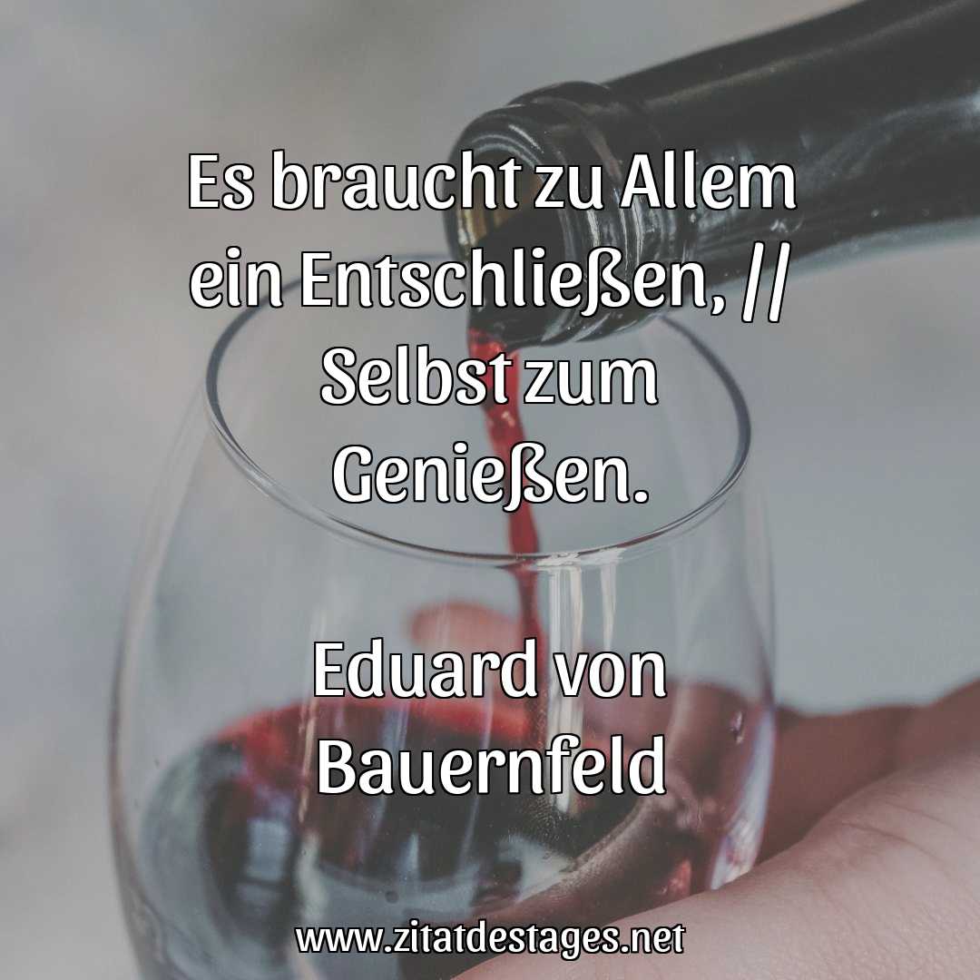 Unser heutiges Zitat des Tages ist: „Es braucht zu Allem ein Entschließen, // Selbst zum Genießen.“ (Eduard von Bauernfeld)