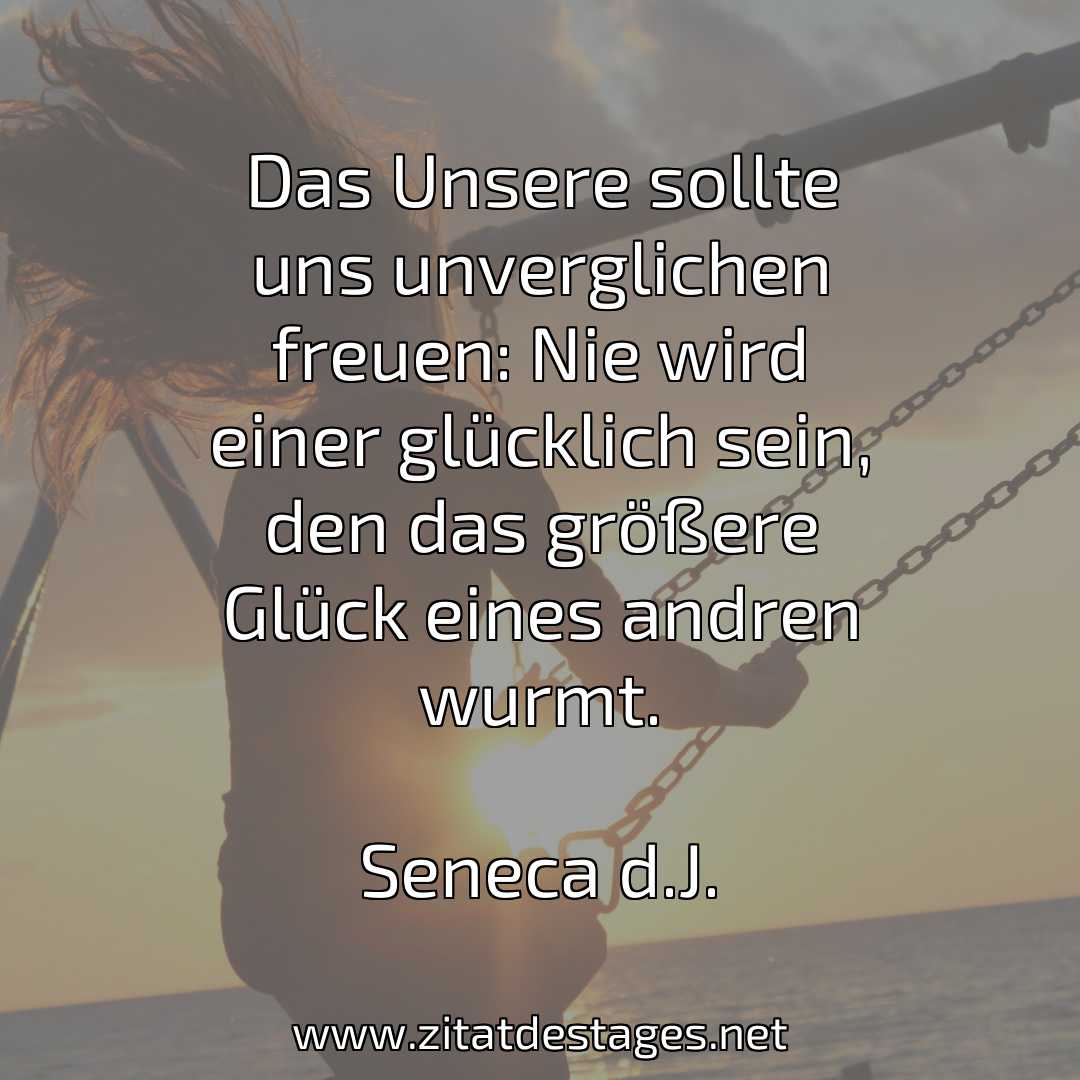Unser heutiges Zitat des Tages ist: „Das Unsere sollte uns unverglichen freuen: Nie wird einer glücklich sein, den das größere Glück eines andren wurmt.“ (Seneca d.J.)