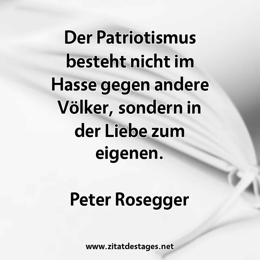 Das heutige Zitat des Tages lautet: „Der Patriotismus besteht nicht im Hasse gegen andere Völker, sondern in der Liebe zum eigenen.“ (Peter Rosegger)