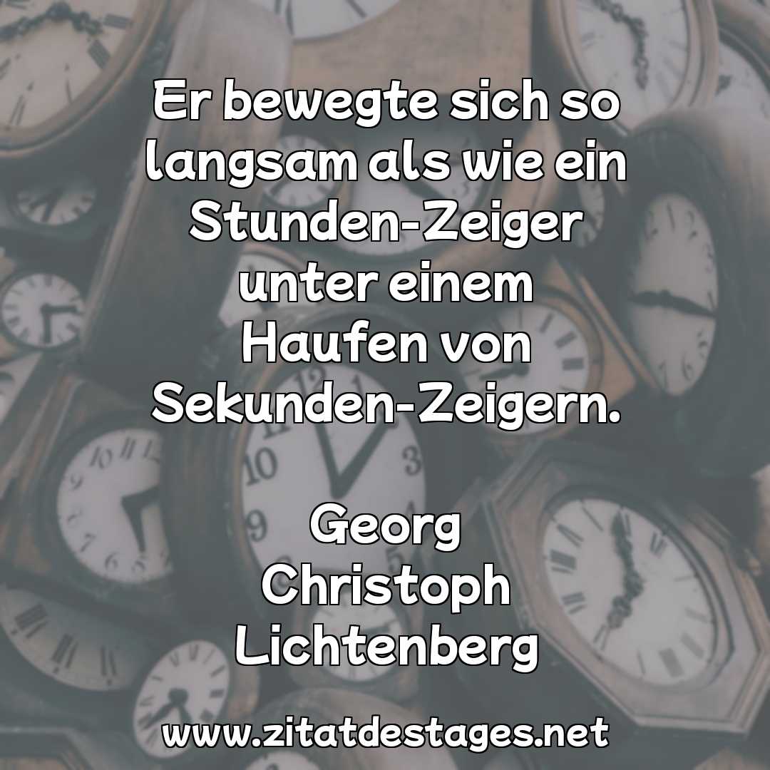 Das heutige Zitat des Tages lautet: „Er bewegte sich so langsam als wie ein Stunden-Zeiger unter einem Haufen von Sekunden-Zeigern.“ (Georg Christoph Lichtenberg)