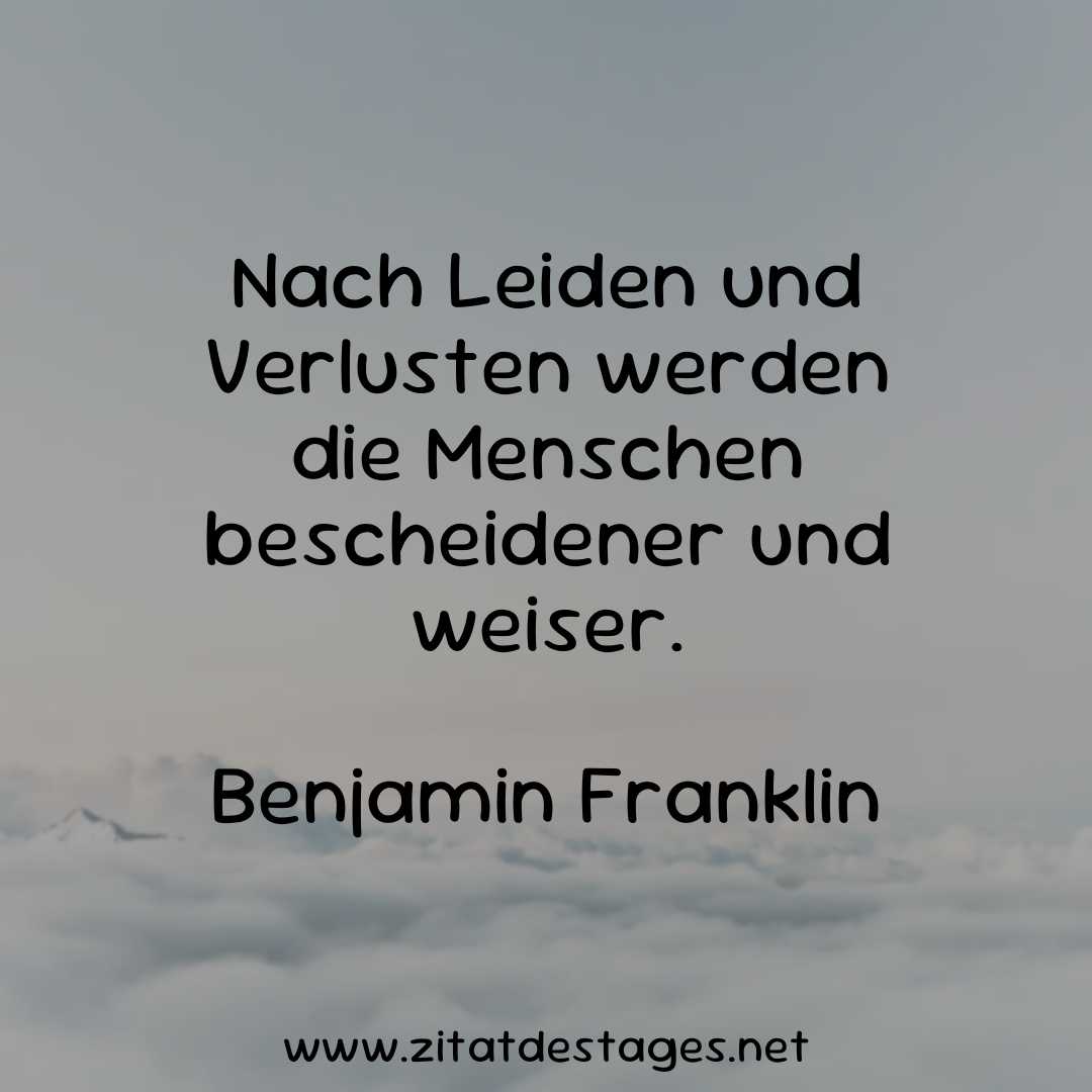 Heute wäre Benjamin Franklin 320 Jahre alt geworden! Benjamin Franklin wurde am 17.01.1706 geboren. Aus diesem Anlass lautet unser Zitat des Tages heute: „Nach Leiden und Verlusten werden die Menschen bescheidener und weiser.“ (Benjamin Franklin)