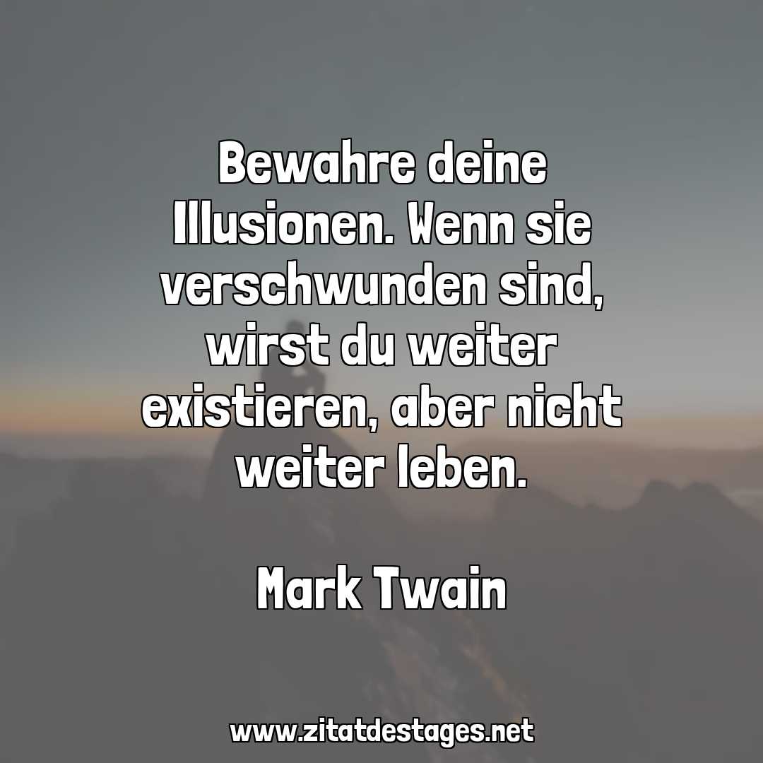 Unser heutiges Zitat des Tages ist: „Bewahre deine Illusionen. Wenn sie verschwunden sind, wirst du weiter existieren, aber nicht weiter leben.“ (Mark Twain)