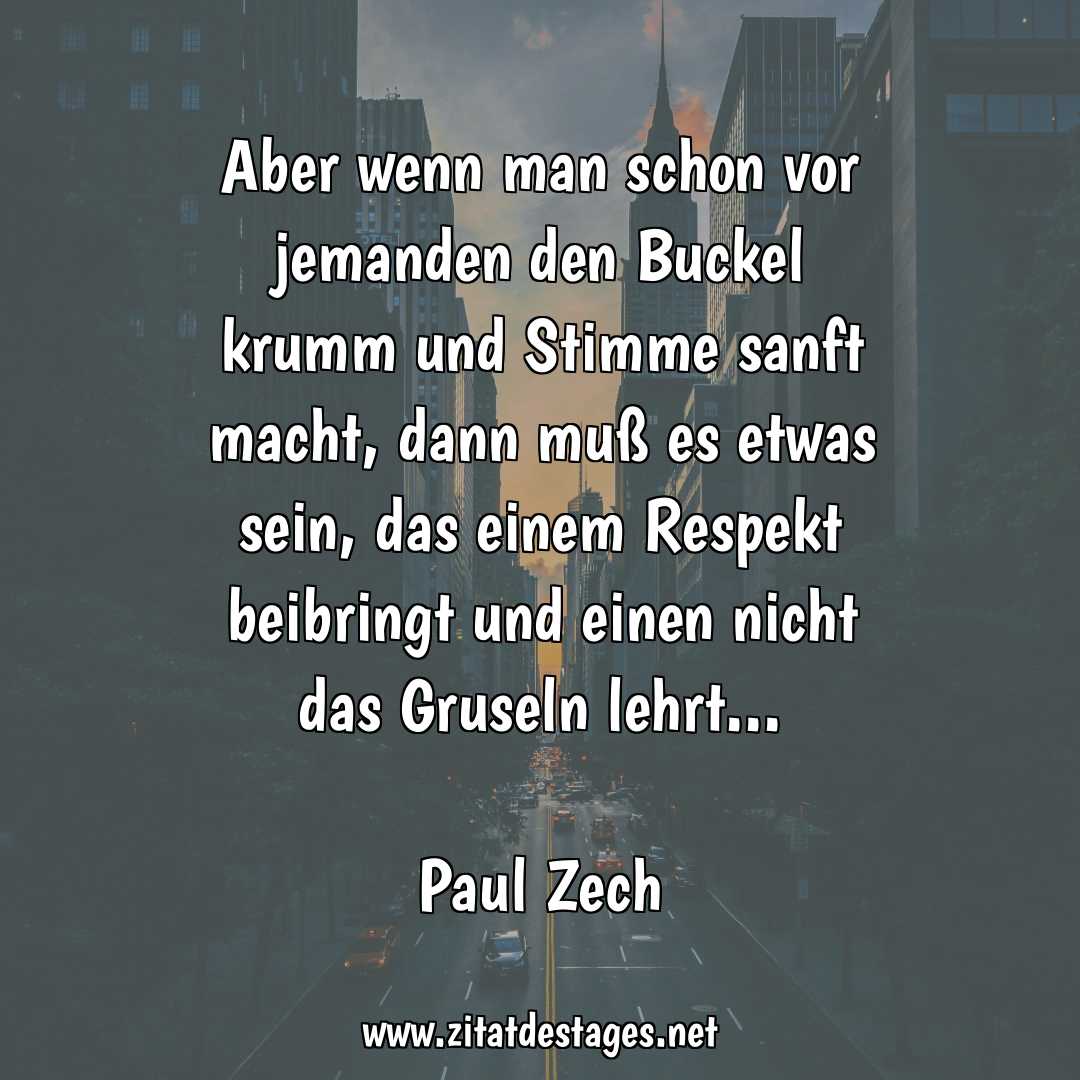 Heute ist der Tag des Respekts (National Respect Day)! Am 18. September wird in den USA der National Respect Day gefeiert. Er fordert uns alle zu einem stets respektvollen Handeln auf. Unser heutiges Zitat des Tages lautet daher: „Aber wenn man schon vor jemanden den Buckel krumm und Stimme sanft macht, dann muß es etwas sein, das einem Respekt beibringt und einen nicht das Gruseln lehrt…“ (Paul Zech)