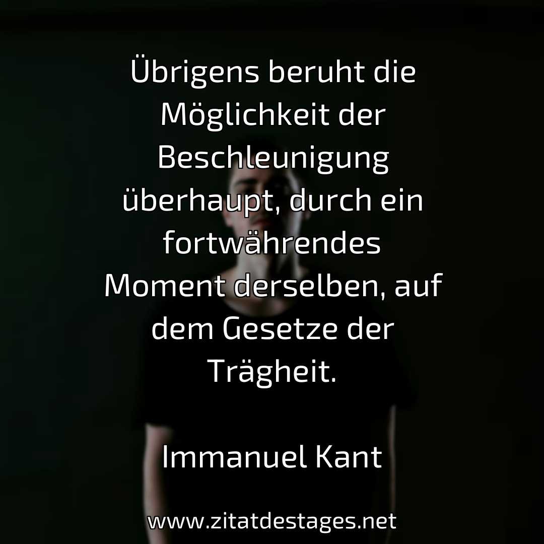 Unser heutiges Zitat des Tages ist: „Übrigens beruht die Möglichkeit der Beschleunigung überhaupt, durch ein fortwährendes Moment derselben, auf dem Gesetze der Trägheit.“ (Immanuel Kant)