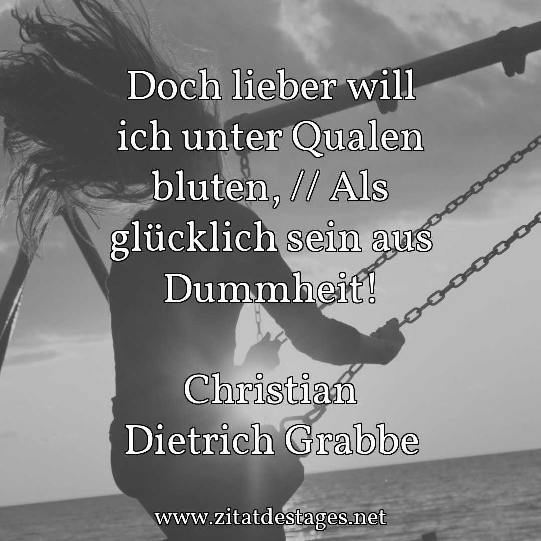 Das heutige Zitat des Tages lautet: „Doch lieber will ich unter Qualen bluten, // Als glücklich sein aus Dummheit!“ (Christian Dietrich Grabbe)