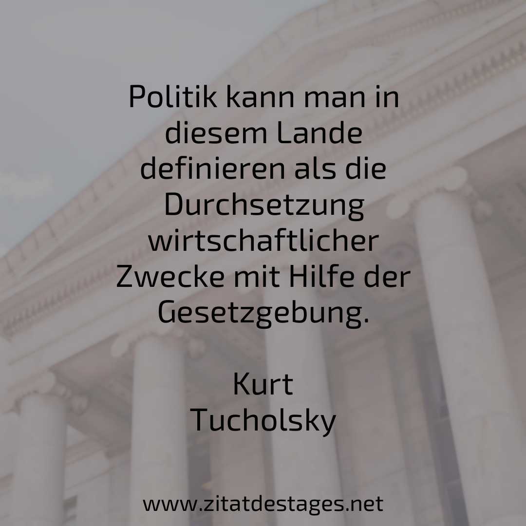 Unser heutiges Zitat des Tages ist: „Politik kann man in diesem Lande definieren als die Durchsetzung wirtschaftlicher Zwecke mit Hilfe der Gesetzgebung.“ (Kurt Tucholsky)