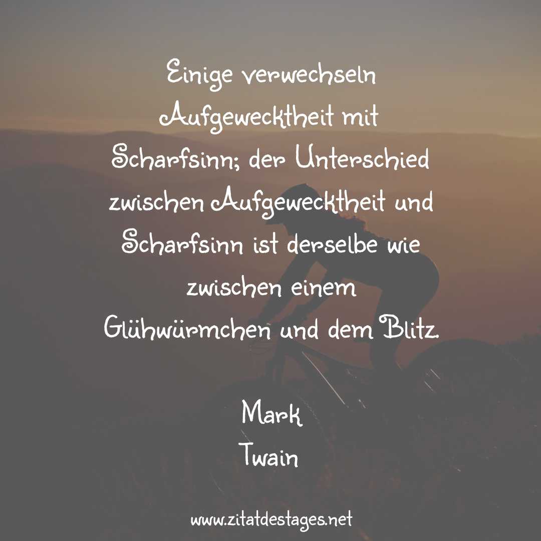 Unser heutiges Zitat des Tages ist: „Einige verwechseln Aufgewecktheit mit Scharfsinn; der Unterschied zwischen Aufgewecktheit und Scharfsinn ist derselbe wie zwischen einem Glühwürmchen und dem Blitz.“ (Mark Twain)