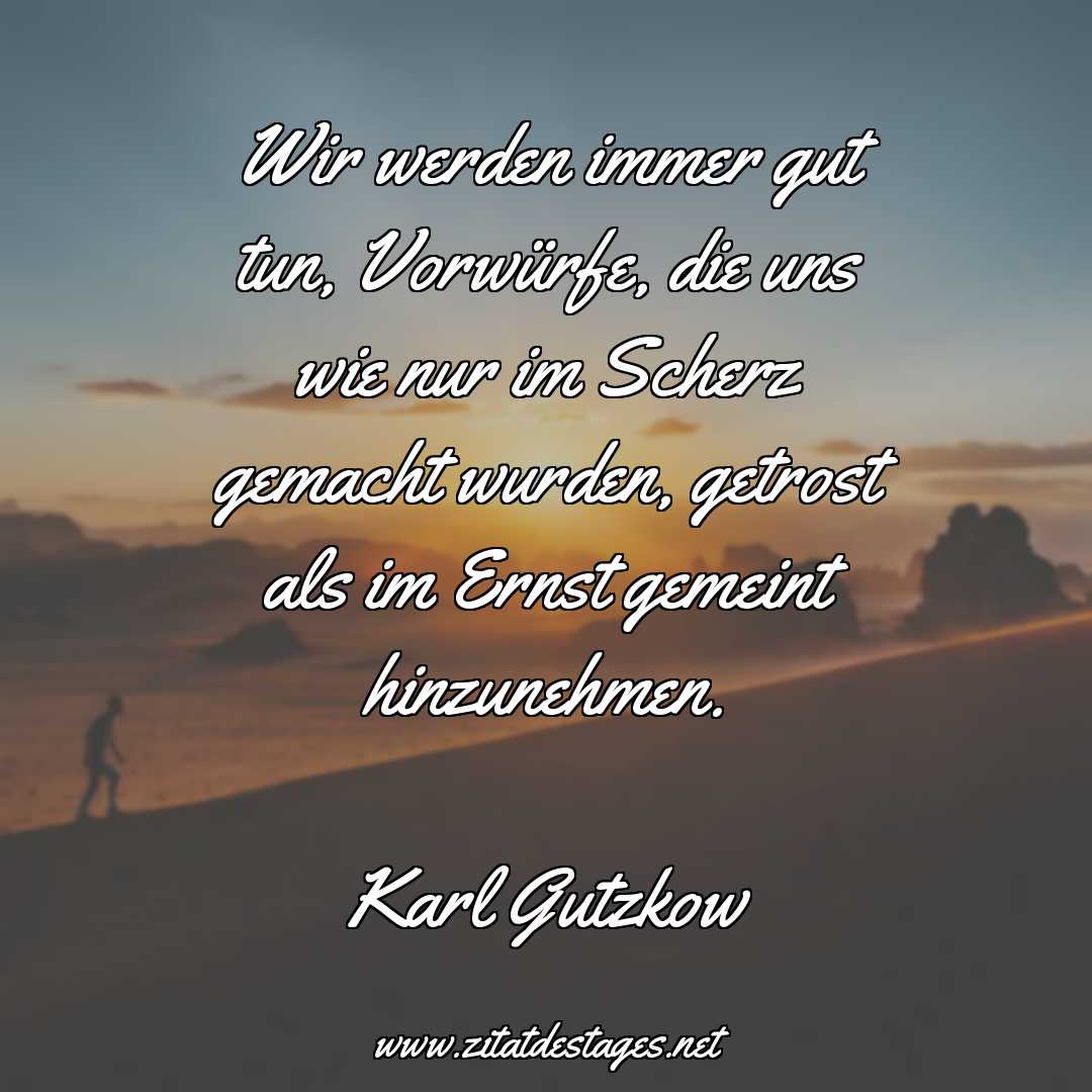 Das heutige Zitat des Tages lautet: „Wir werden immer gut tun, Vorwürfe, die uns wie nur im Scherz gemacht wurden, getrost als im Ernst gemeint hinzunehmen.“ (Karl Gutzkow)