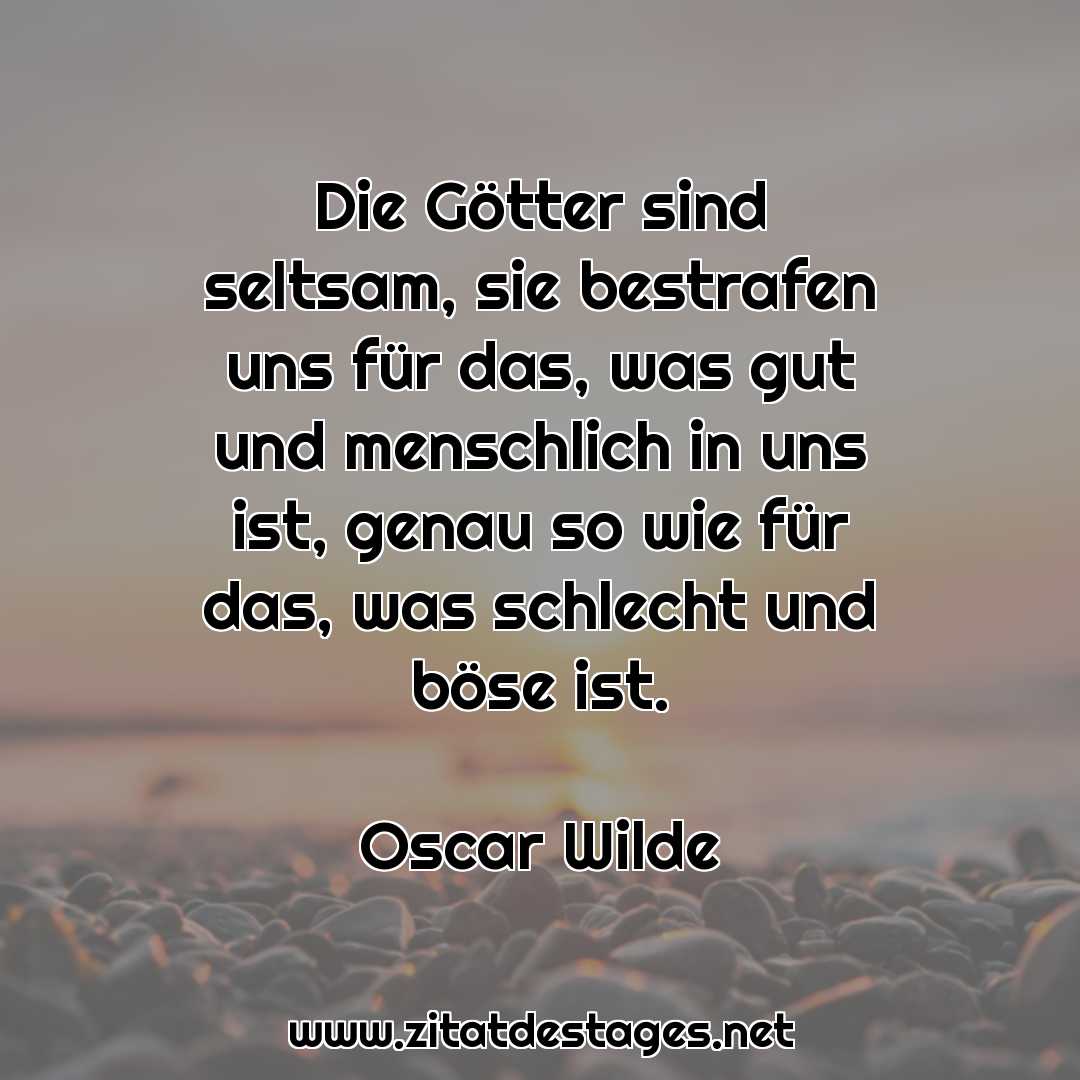 Unser heutiges Zitat des Tages ist: „Die Götter sind seltsam, sie bestrafen uns für das, was gut und menschlich in uns ist, genau so wie für das, was schlecht und böse ist.“ (Oscar Wilde)