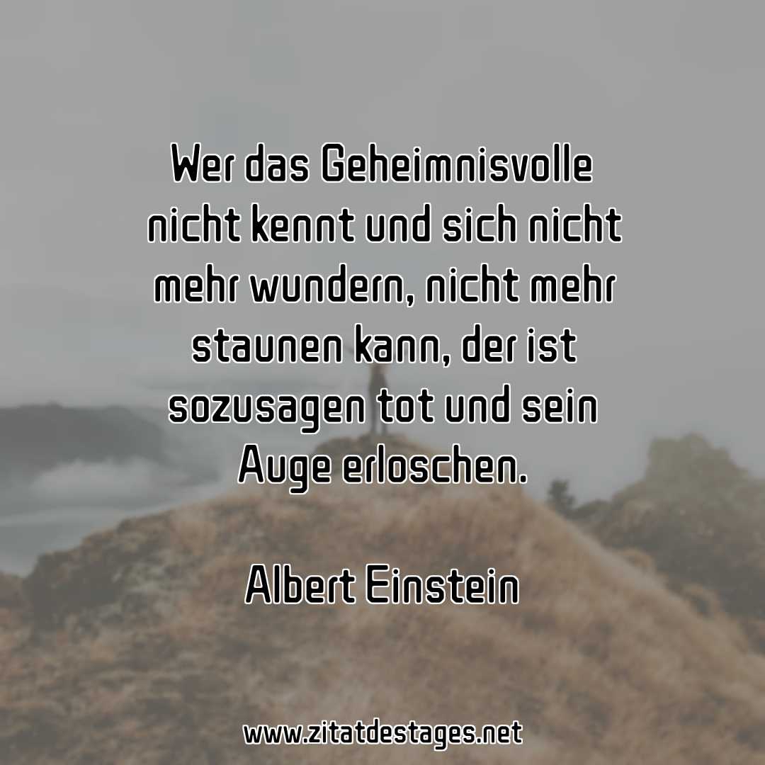 Das heutige Zitat des Tages lautet: „Wer das Geheimnisvolle nicht kennt und sich nicht mehr wundern, nicht mehr staunen kann, der ist sozusagen tot und sein Auge erloschen.“ (Albert Einstein)